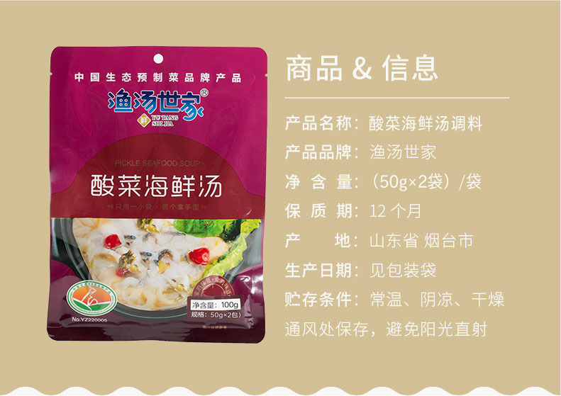 酸菜海鲜汤 100g